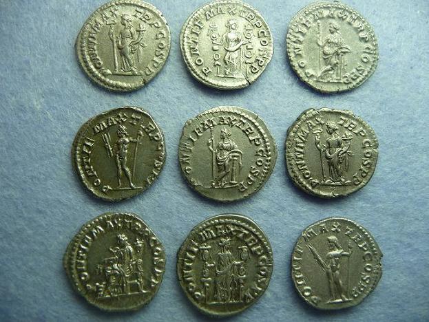 Von daher mal ein Foto mit verschiedenen Büsten - Portraitvarianten und FIDES MILITVM Rückseiten, die