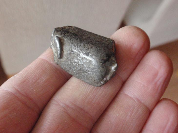 Es ist das Endstück eines Silberbarrens gefunden auf einem Römerplatz! Das Teil wiegt 50 Gramm und hat die typische Barrenform!