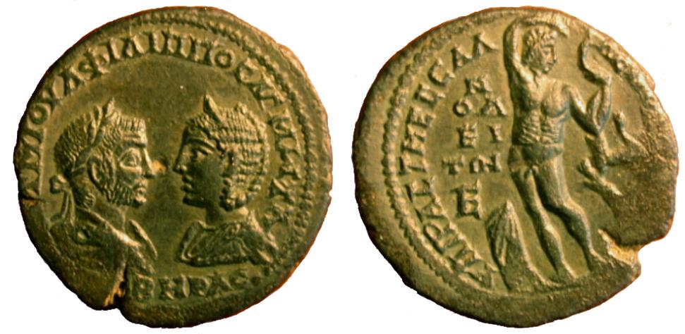 Jochen, danke fürs Zeigen. Bei letzterer Münze ist es wohl ein wirkliches echtes Vergessen des O. Bei der ersten Variante, dem vergessenen A von MAPKIANOPOLIS habe ich die Vermutung, dass es auch eine linguistische Ursache haben könnte: Das R in Marrrkianopolis wurde vielleicht kaum gesprochen, der Stadtname hörte sich vielleicht eher an wie Maaakianopolis, d. h. der Stempelschneider schnitt gewissermaßen nach Gehör und so entstand dieser Schreibfehler viel häufiger als andere und die Ligatur AP (zum Beispiel AMNG 575, 720, 726, 729, 730, 733, 734 etcpp.) ist Ausdruck dieser lautmalerischen Schreibweise. |