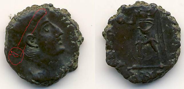 sieht für mich aber mehr nach Constantius II. aus. Das Diadem scheint nur sehr flau geprägt zu sein, ich habe mal was gekritzelt.
