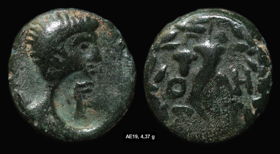 herzlichen Dank für deinen Einsatz! Ich bin selbst nicht untätig geblieben und denke, ich bin mit der Suchwortgruppe "cornucopia in wreath" nach Jahren endlich fündig geworden. Möglicherweise habe ich auch durch eigene Lesefehler eine falsche Spur gelegt, sorry! :oops: Das Λ ist ein Δ und unter dem O ist der Rest eines Σ zu erkennen. Bei dem Vergleichsstück wird die Legende als ODHSIT aufgelöst. Hier ist mein Ergebnis: Augustus. Odessus mint. AE 19. Countermark.
