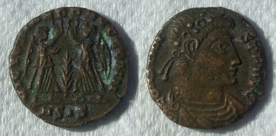 Die 2. Münze ist von Flavius Julius Constans Augustus - hier eine Vergleichsmünzehttp://www.acsearch.info/search.html?search=similar%3A325038#0