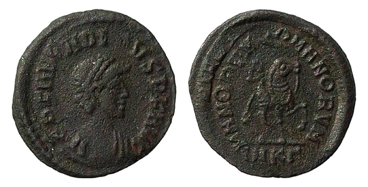 Dein Arcadius ist eine echte Seltenheit, da die AE4 kaum doppelt, geschweige denn drei mal geschlagen wurden. Ich müßte auch die eine oder andere doppelt geschlagene Münze haben, aber bestimmt keine dreifach geschlagene und auch keine AE4.