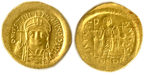In Anlehung an die schöne Münze von Franz hier mal mein Iustinianus.