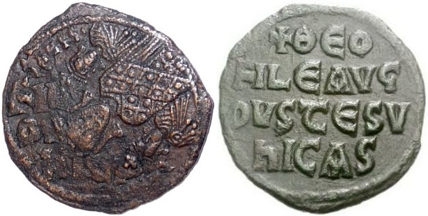 Mein Exemplar wiegt übrigens 6,8 Gramm. Solche Gewichtsschwankungen sind bei diesen Ausgaben absolut normal. Alberto Trivero stellte im forumancientcoins mal einen Artikel über die epigraphischen Folles online. Er untersuchte dabei auch die Massen der Münzen. Für die Folles des Basilius I. ergaben sich bei 32 ausgewogenen Exemplaren Massen von 4,20 bis 9,75 Gramm.
