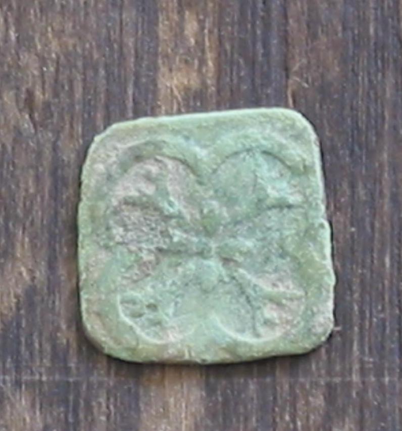 Bei dem kleinen Viereck habe ich zuerst an eine Verzierung gedacht. Da es aber beidseitig geprägt ist, kommt mir das komisch vor... Hat jemand eine Idee, was das kleine Teil sein könnte?