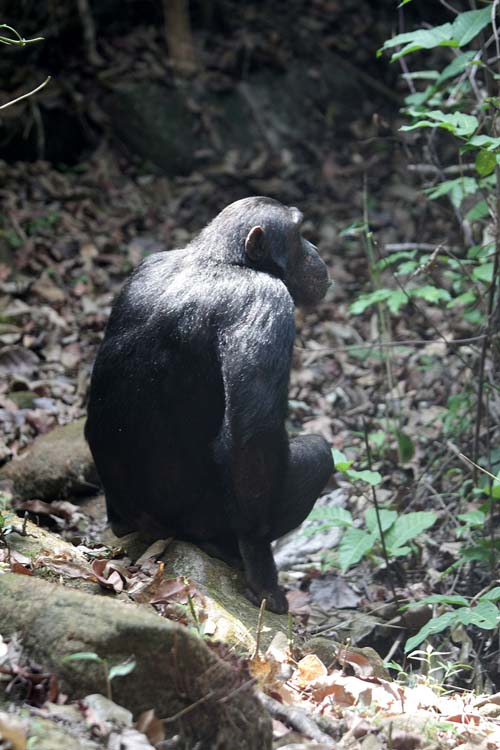Immer den Schimpansenwegen folgend ging es in zügige Tempo, man merkte das der Ranger bedeutend besser an das Klima angepasst war als wir, leicht Berg auf, tiefer in den Wald hinein. Interessant war, dass, entgegen meiner Vermuten, keinerlei Tiere zu sehen waren auch keine Insekten oder Käfer, lediglich riesige Schmetterlinge flogen in großer Zahl und in vielen Arten durch den Wald. Nach der vorhergesagten Stunde Marschzeit hörten wir die ersten Schreie der Schimpansen.