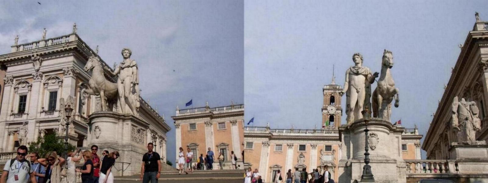 Wenn man über die Piazza di Campidoglio schreitet und seinen Blick Richtung Rathaus wendet (welches leider für Touristen nicht zugänglich ist