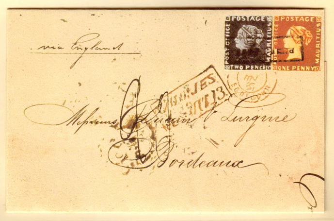 Der einzige Brief-Umschlag, auf dem die rote UND die blaue Mauritius zu finden sind.