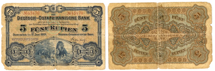 Etwas numismatisches sollte im ersten Kapitel aber auch nicht fehlen. Über den zerfledderten Zustand des Scheins zu 5 Rupien aus 1905 seht Ihr hoffentlich hinweg. Der ist aber garantiert gelaufen….