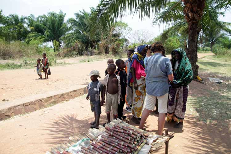 Das Schiff war von Fischerbooten umgeben, an allen Stellen wurden Waren in beiden Richtungen über die Bordwände verladen, Personen wechselten von Boot aufs Schiff und umgekehrt. Manche boten gebratenen Hühnchen an, andere verluden große Säcke mit getrockneten Süßwassersardinen. Das unglaubliche Schauspiel zog sich etwa eine halbe Stunde hin. Ein erstes Signal des Kapitäns zur Weiterfahrt wurde gefliessentlich ignoriert, ebenso wie das zweite. Erst beim dritten Signal, verbunden mit der Erhöhung der Motordrehzahl sorgte dafür, dass die letzen „Gäste“ von Bord sprangen und zu Ihren Booten schwammen.