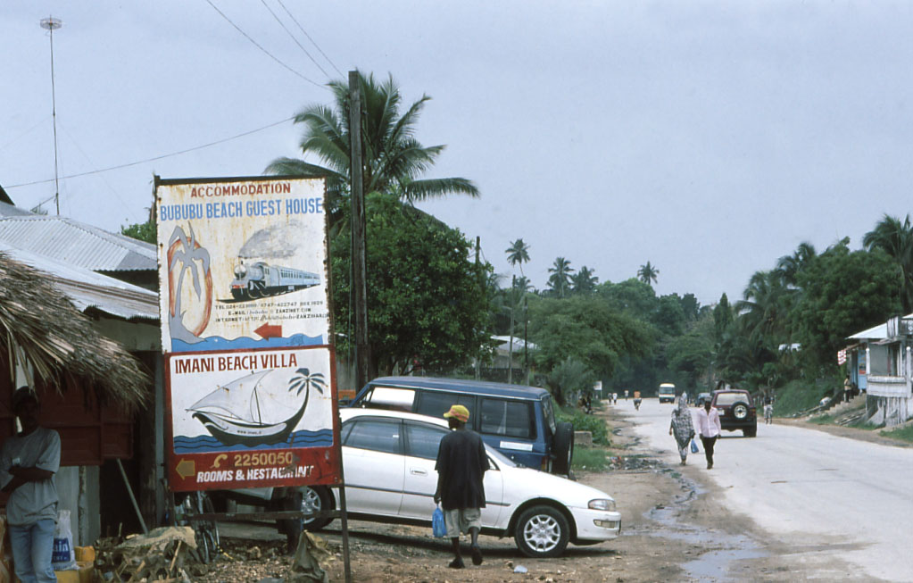 Das einzige Photo meiner Reise von 2007, das ich hier zeigen möchte, stammt aus Bububu, nördlich von Sansibar City. Dieser Ort war seinerzeit Endpunkt einer Bahnlinie ausgehend von Stone Town. Diese nur knapp 20 km lange Linie bestand nur kurze Zeit von 1905 - 1929. Vorletztes Jahr hatte ich mich auf den Weg gemacht, Reste dieser lange vergessenen Bahnlinie zu finden. Leider habe ich nur ein Werbeschild eines Guest Houses in Bububu gefunden. Der dort gezeigte futuristische Zug hat aber nichts mit dem tatsächlichen Aussehen der Züge anno dazumal zu tun (Bild ZNZ 07-1). Trotzdem war es nett, den Ort mal aufgesucht zu haben.
