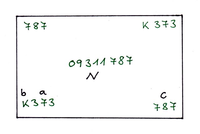 Wichtig auch als kontrolle über die Ehtheit der Banknote, auf die schnelle kann man die Echtheit mit dem vergleich von den letzten drei Seriennummern vornehmen. Die drei Nummern (c) müssen mit den letzten drei Nummern der kompletten Seriennummer (N) übereinstimmen. (siehe Foto)