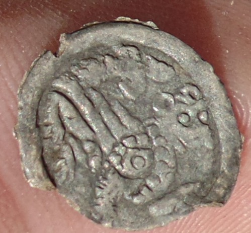 Münze 2 : Gewicht ca. 0,2g Durchmesser: 13mm sehr winziger Pfennig (?) für das vmtl. 13 Jhdt. eine Seite mit gehörnten Fabelwesen mit Flügeln und Drachenschwanz andere Seite dürfte ein Paarhufer sein,