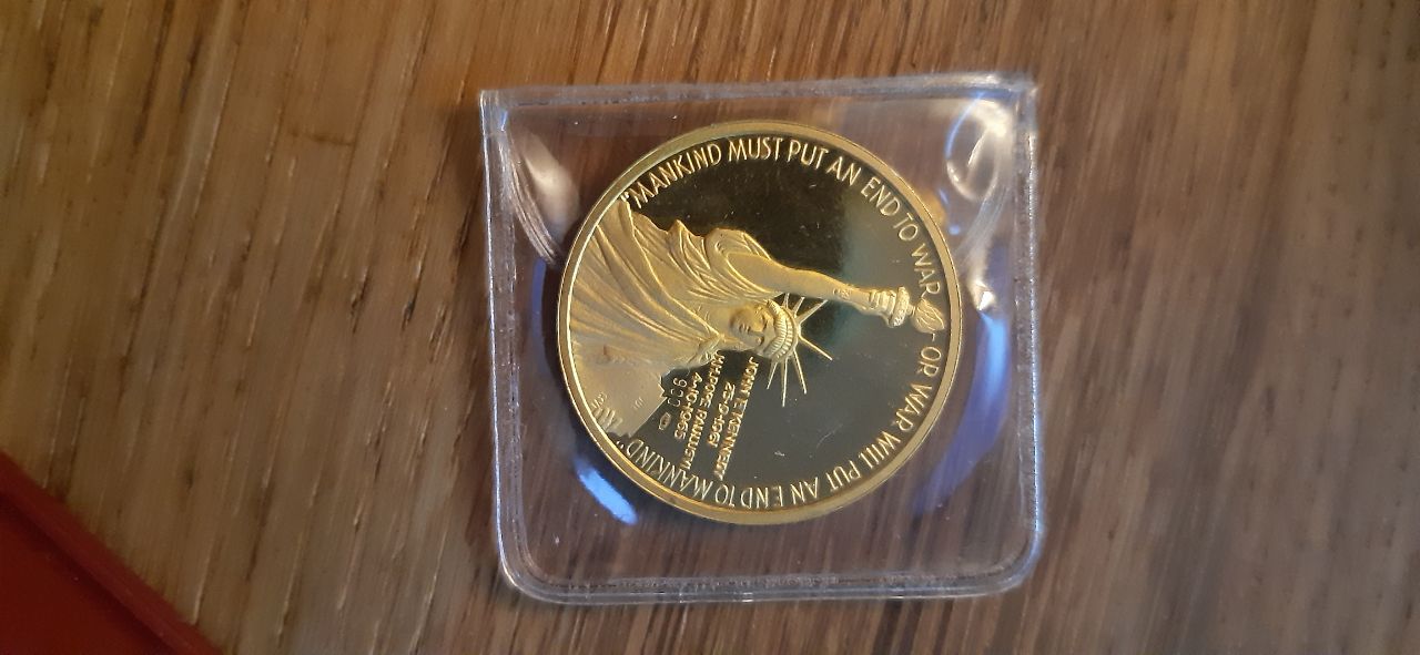 Eine privat geprägte Goldmedaille (Punze 900) auf John F. Kennedy. Der Hersteller ließe sich vielleicht aus der Punze neben der 900 herausfinden. Bringt immerhin mindestens den Goldpreis. Grüße, KarlAntonMartini