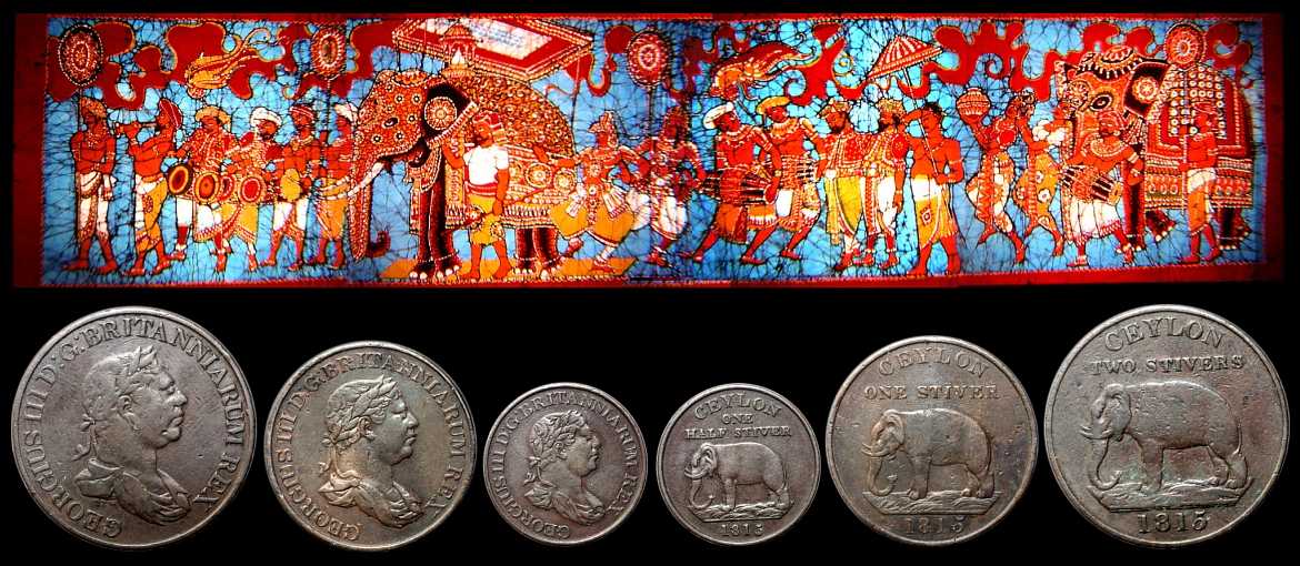 Ceylon-Government (1801-1803) fallen ab 1801 die ersten britischen Prägungen mit dem Elefanten-Motiv. Die Prägung erfolgte in dieser Zeit auf zwei Ebenen. Vor Ort wurden in