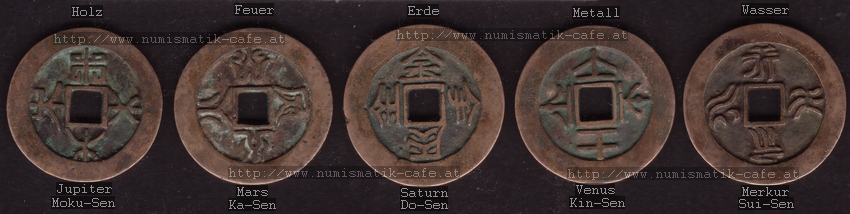 heute möchte ich euch eine Serie von Münzen zeigen, die in Japan ausgegeben wurde. Der Ausgabezeitraum liegt etwa ums Jahr 1660 und bekannt sind die Münzen unter dem Begriff E-Sen.