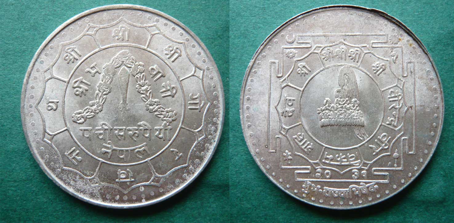 Ich war zweimal in Nepal, 1979 mit dem Auto und 1999 mit dem Flieger. Diese Münze habe ich allerdings nicht gesehen, schönes Stück.
