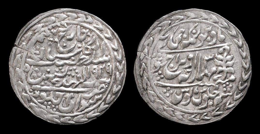 Natürlich hab ich eine passende Münze, eine sogenannte Nazarana Rupie von 1911. Sie wurde noch im Namen der lang verstorbenen Queen and Empress Victoria geprägt, auf einer Seite das nationale Symbol, die Pflanze namens Jhar, die mir botanisch immer noch Rätsel aufgibt. Nazarana Rupien nennt man die auf dünnem aber großem Schrötling ausgeprägten Repräsentationsmünzen. Sie zeigen immer das volle Münzbild. (Vor zwei Jahren wurde nebenan ein Exemplar aus 1913 vorgestellt, das deutliche Umlaufspuren und einen Prüfhieb zeigt, also wurden diese Stücke als richtiges Geld benutzt.)