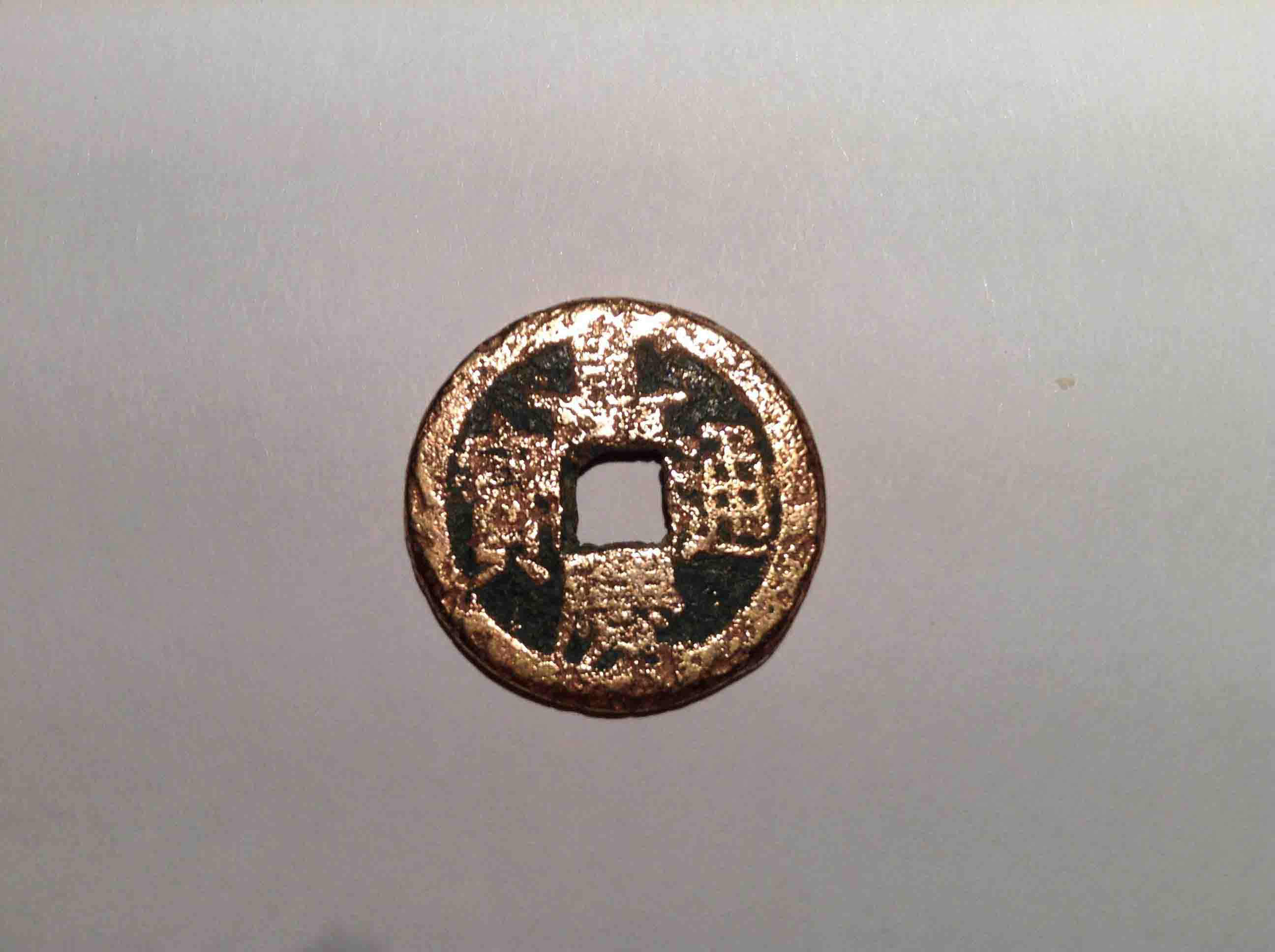 So, habe mal ein Paar schöne Fotos der eigentlichen Münze gemacht. Auf dem Foto glänzt sie etwas mehr als in echt. Ich denke es ist Kupfer, denn vor dem waschen war eine leicht grünliche Patina zu sehen. Der Zustand ist gut genug um die Schriftzeichen zu erkennen. Handelt es sich um die selbe Münze, wie die links oben, oder ist das eine ganz andere Zeit? Wie findet ihr Herkunft und Alter der Münze heraus? Ich würde das nämlich gerne selber machen, aber ich konnte im Internet nichts finden und kann kein Chinesisch. Ich habe zwar nicht vor diese Münze zu verkaufen, weil sie mir gut gefällt und meine Sammlung gut ergänzt, aber kann jemand eine Schätzung abgeben, wie viel die Wert sein könnte?
