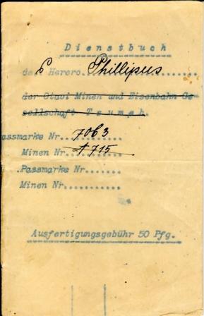 Dateikommentar: Arbeitsbuch der "Otavi Minen und Eisenbahn Gesellschaft" Tsumeb.