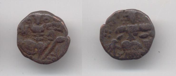 Vor ein paar Tagen erst aus GB angekommen. Ein Bronze-"Stater" (?) aus Kaschmir, mit der berüchtigten Königin Didda von Lohara (http://de.wikipedia.org/wiki/Lohara-Dyn ... von_Lohara).