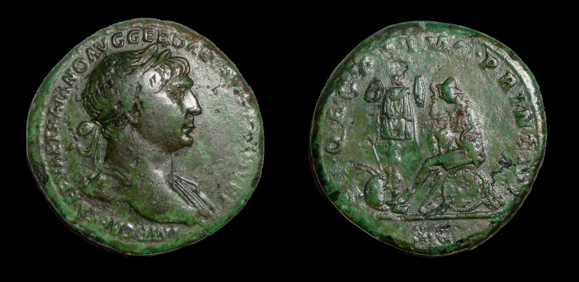 Bei Trajan kann ich auch noch folgenden Sesterz vorzeigen, der an die Dakerkriege erinnert.