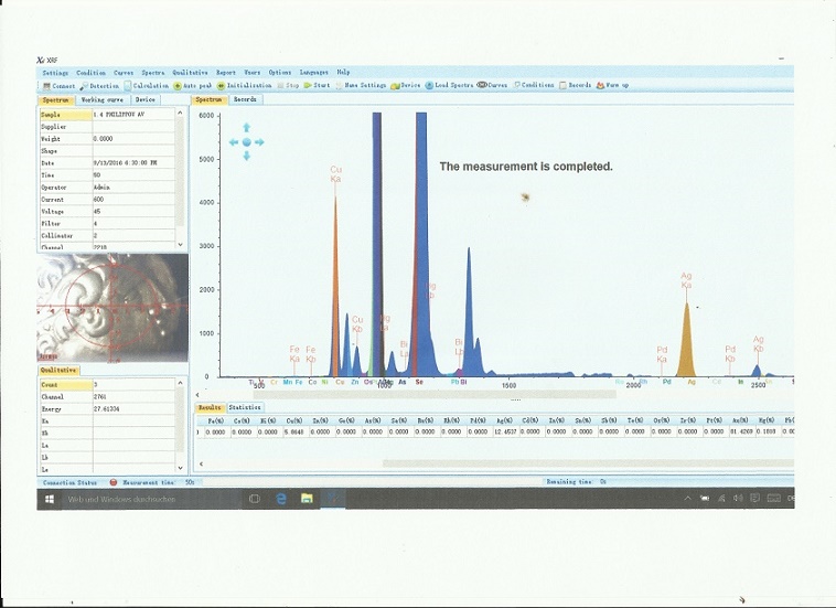 Vor ca.einem Jahr habe ich eine Metallanalyse von der oben gezeigten Münze machen lassen.