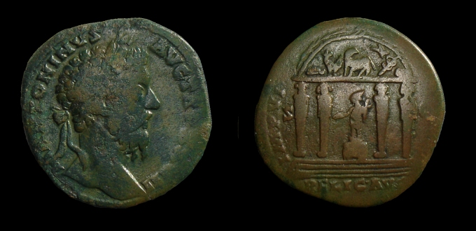 Auf ein weiteres interessantes Ereigniss weist nachfolgender Sesterz des Marcus Aurelius: