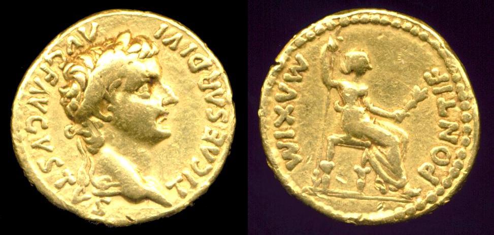 Einen ähnlichen Aureus wie Müpu kann ich auch beisteuern. Ist nicht so gut erhalten, aber ein anderer Typ. RIC I, 27 var.; BMCR 39 var.