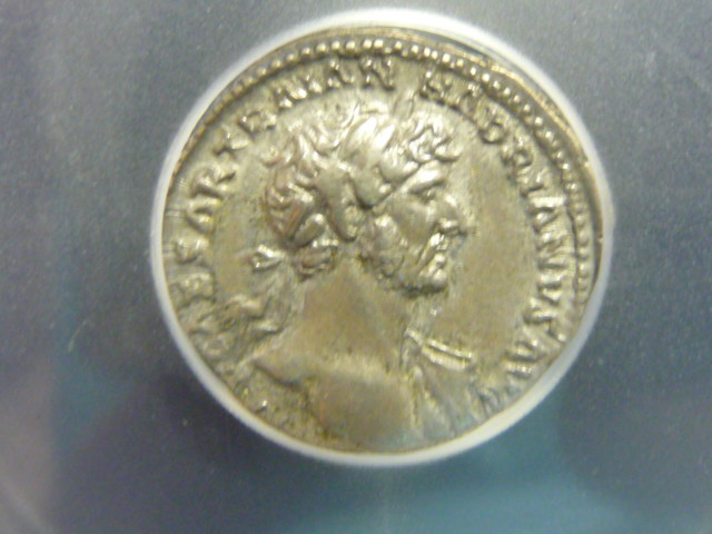 Interessant bei dieser ersten Ausgabe von Hadrian: er trägt noch die ihm vom Senat beschlossenen Titel des Traianus, Optimus, Germanicus, Dacicus, Parthicus und Pater Patriae, die aber in der zweiten Ausgabe verschwinden, weil Hadrian sie abgelehnt hat.