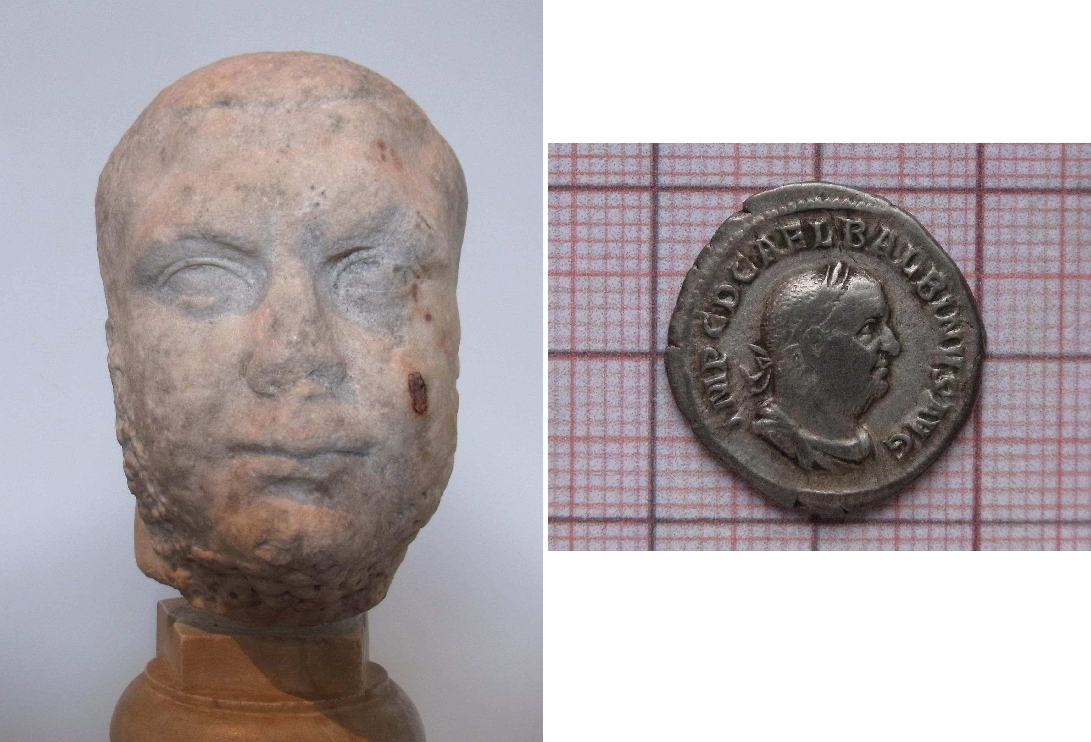 (Büste ausgestellt im Museum auf dem Pallatin, Denar des Balbinus)