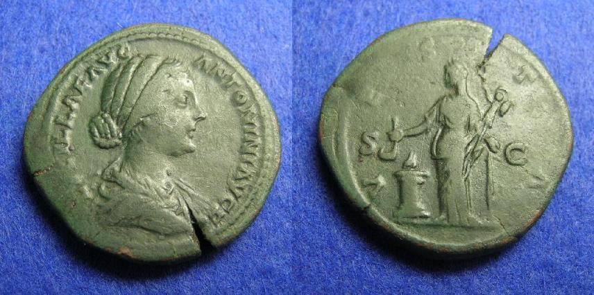 Heute habe ich einen hübschen Lucilla-Sesterzen bekommen. War mit gut hundert Euro kein Billgheimer, aber durchaus günstig, denke ich. Neben der ordentlichen Erhaltung und der schönen grünen Patina hat mich vor allem auch das hohe Gewicht gereizt (was bei Damen doch eher die Ausnahme ist ;) ): die Münze bringt 31,38 Gramm auf die Waage und ist damit mein bei weitem schwerster Sesterz (Größe dazu passend 33-34 mm!). Der Schrötlingsriß ist Geschmackssache, mich persönlich stört er überhaupt nicht. Zu fotografieren war die Münze nicht ganz leicht, aber aus der Kombination der Bilder von oben und etwas schräg kann man sich ein realistisches Bild machen