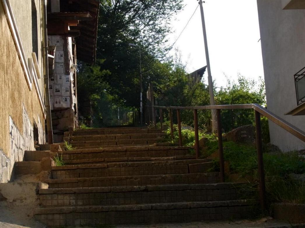 Bild zwei immer munter die Strasse bergauf Richtung Treppen