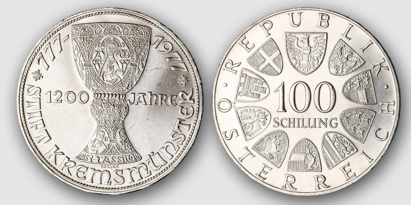 Die Abbildung auf der Münze nach einem Entwurf von Kurd Bodlak trifft den Kelch sehr gut, die aufgenieteten Nielloplatten sind ebensogut erkennbar wie die Umschrift und die Ornamente.