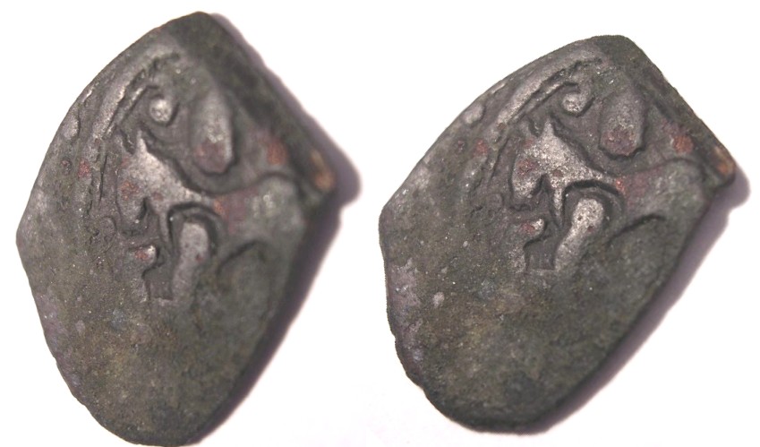 Ich sehe da etwas anderes. Wenn ich die beiden Bilder der Rückseite aufhelle und drehe, bleibt von den Mameluken und anderen Orientalen nicht viel übrig ... aber immerhin ein Tier, das wie ein Pferd aussieht. Und da denkt man als Unkundiger - und das bin ich für diesen Bereich - doch eher an Kelten. Auf den Vorderseiten erkenne ich übrigens rein gar nichts ... :oops: