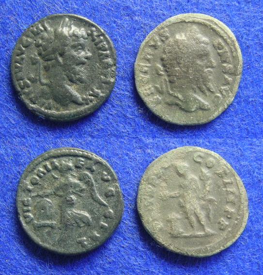 Weißmetall-Gußdenare sind das, was oft auch als Limesfalsa bezeichnet wird (allerdings sind die echten Limesfalsa meist untergewichtige gegossene Bronze-Asse). Die Denare wurden aus einer Mischung gegossen, wahrscheinlich Blei, Zinn, bißchen Silber, bißchen Kupfer, auch je nachdem, was gerade zur Hand war), die in frischem Zustand silberweiß aussah, heute aber mittel- bis dunkelgrau.