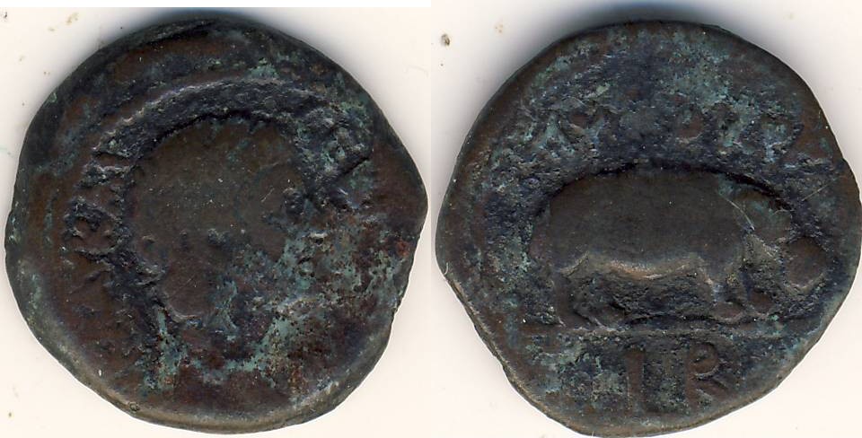 Aus Alexandria stammt dieser Obol des Claudius (AD 41-54) mit dem Jahr 2, der 4,71g auf die Waage bringt bei einem Leibesumfang von 20,4mm.
