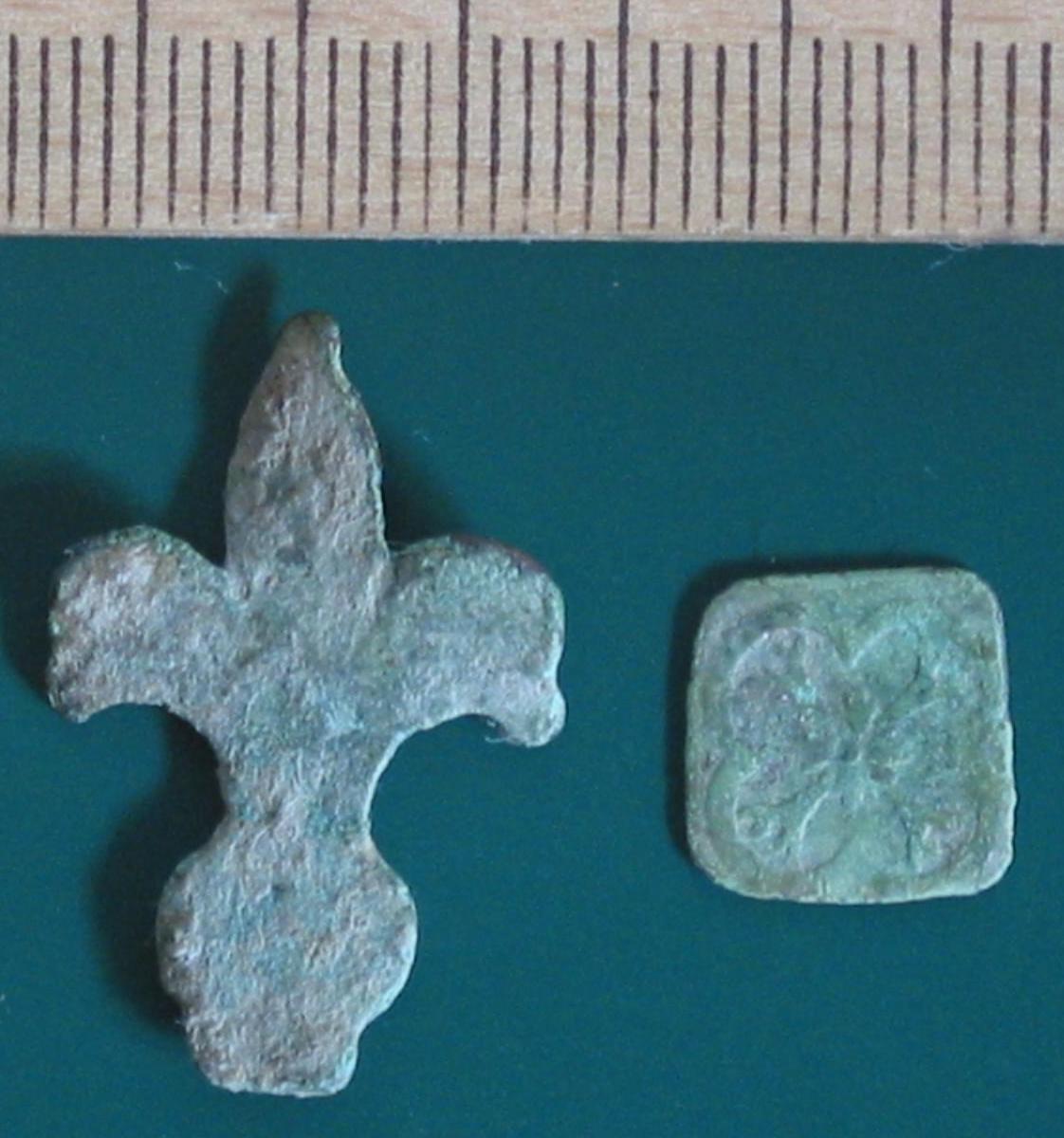 Bei dem kleinen Viereck habe ich zuerst an eine Verzierung gedacht. Da es aber beidseitig geprägt ist, kommt mir das komisch vor... Hat jemand eine Idee, was das kleine Teil sein könnte?