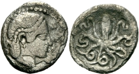 Eine Litra ist übrigens ein kleines Silbernominal, das besonders auf Sizilien verwendet wurde und etwas mehr als ein Obol zählte (ein Obol 1/6 Drachme, eine Litra 1/5 Drachme). Deine Litra ist allerdings etwas untergewichtig: Sie ist etwas leichter als der Obol ischbierras und sollte doch eigentlich etwas mehr wiegen (ca. 0,87 g.).