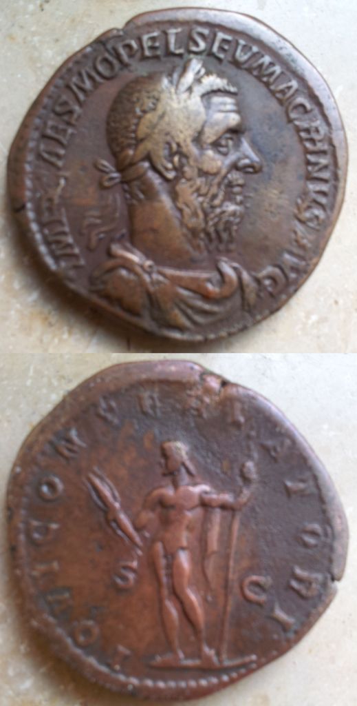 Obv. IMP CAES M OPEL SEV MACRINVS AVG, laureate, draped and cuirassed bust right