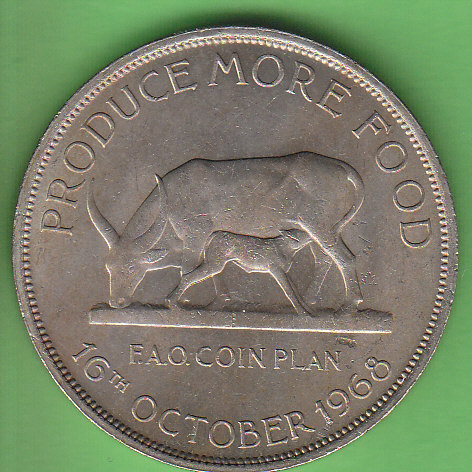 UGANDA: 5 Shillings 1968 FAO Kuh mit Kalb Ku-Ni 1968 vz-stgl.