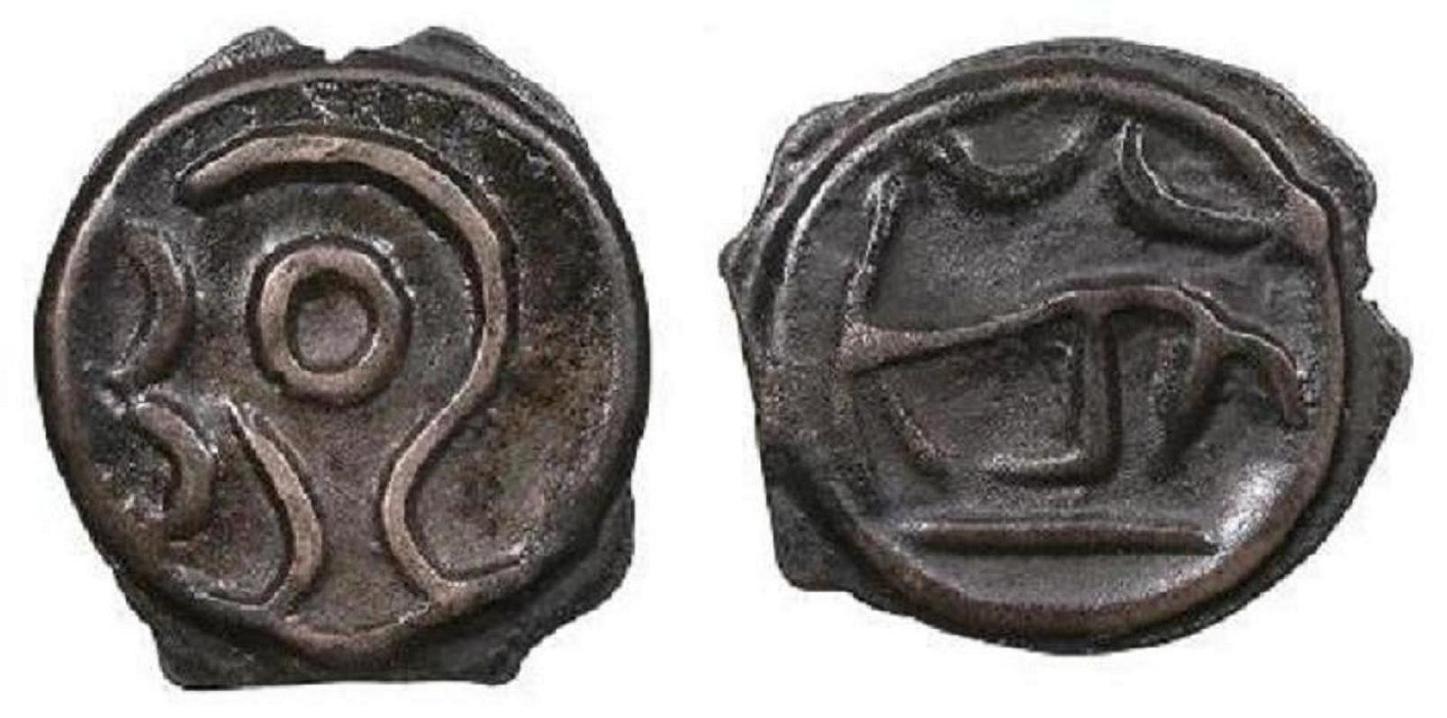 http://www.celticcoins.ca/record.php?coin_id=941077&itype=coinhttp://www.finds.org.uk/CCI/details.php?coin_num=94.1077zu 2) gegossene Potin-Münze (d.h. Münze aus zinnreicher Bronzelegierung) der Senones, Stamm in der Gegend des heutigen Sens in Frankreich.
