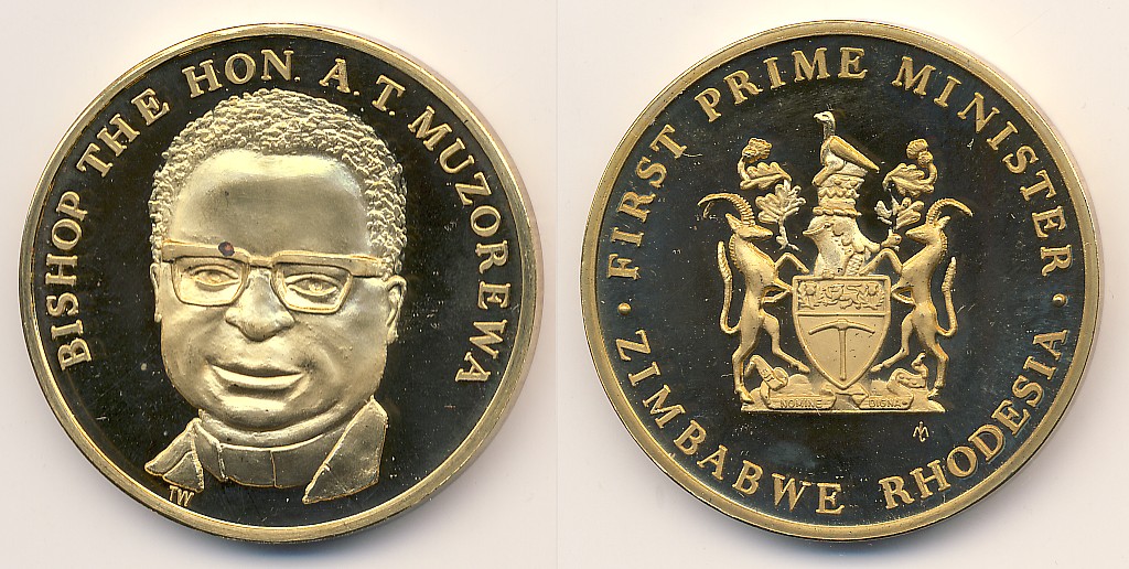 Im Lancaster House-Abkommen vom Dezember 1979 wurden u.a. Neuwahlen beschlossen, an der auch die schwarze Bevölkerungsmehrheit teilnehmen sollte. Diese wurde zeitnah im Februar 1980 nach einem ziemlich dreckigem Wahlkampf Mugabes abgehalten, dessen Partei als haushoher Sieger hervorging. Muzorewa – der Protagonist unserer Medaille – wurde entmachtet und wenig später auch Sithole und Nkoma kaltgestellt. Seit 1980 regiert Mugabe (inzwischen 88-jährig) das Land fast uneingeschränkt. Man darf sicherlich sagen, daß mit jedem Jahr seiner Regentschaft die Situation im Land schrittweise bergab ging. Vor der Präsidentschaftswahl 2008 flehte das zimbabwische Volk (schwarz wie weiß) den noch im Lande lebenden Bischof Muzorewa an, doch bitte gegen Mugabe zu kandidieren. Dieser lehnte mit Hinweis auf seine Krebserkrankung ab und empfahl stattdessen, für Zimbabwe zu beten.