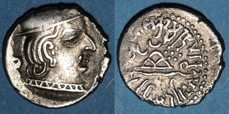 beim Begucken der Neuzugänge bei MA-Shops (u.a. sehr interessante keltische Münzen eines Anbieters, von dem ich bisher nichts wusste) finde ich folgende Münze, die Deiner ziemlich gut entspricht und von der Firma Poinsignon Numismatique einer speziellen Person zugeordnet wird, ein Zitat gibt es auch: