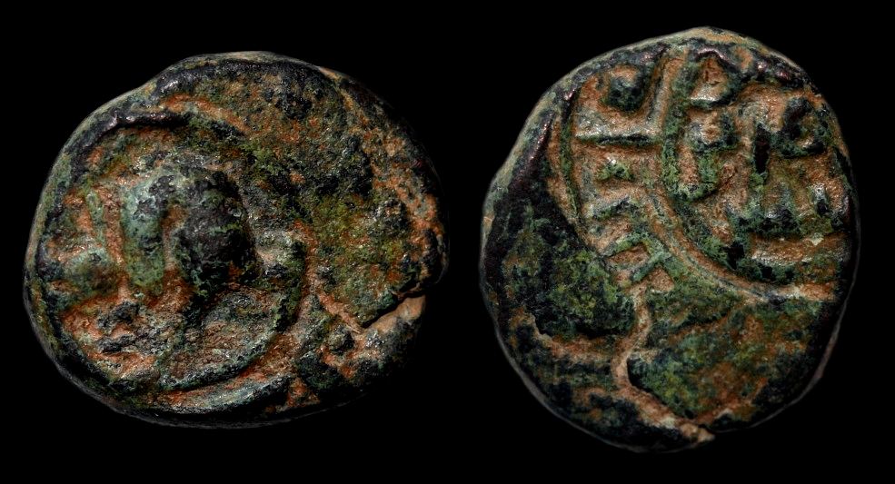 Die folgenden Bildmünzen kommen ausnahmslos aus dem syrischen Raum, genauer aus der Stadt, die von den Römern Emesa, von den Arabern später Homs genannt und die im vergangenen Jahr unter dem Namen Hims zerschossen wurde. Die Münzen sind undatiert, aber ihre Prägezeit wird auf ca. AH 65-132 / 685-750 AD angesetzt. Sie entstanden also mehrheitlich höchstwahrscheinlich nach der zweiten Münzreform des Abd al Malik AH 77-79 / 696-698 AD.