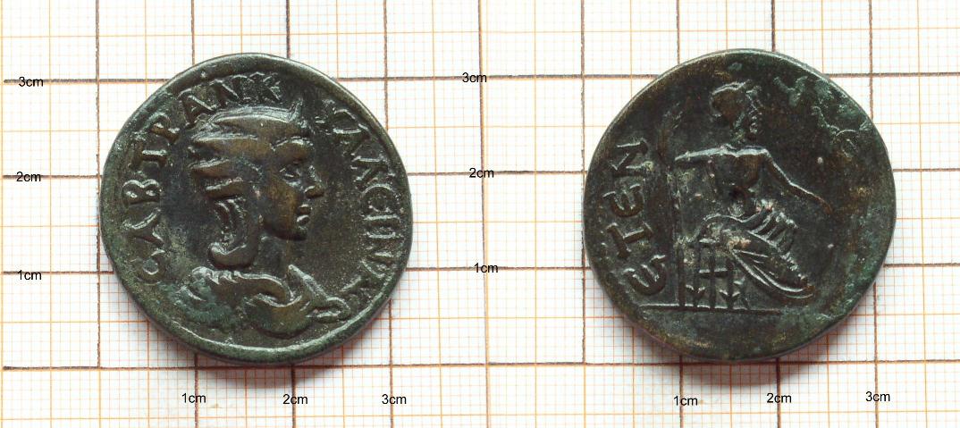 habe nicht nachgesehen, ob die Frage zu Etenna schon offiziell beantwortet wurde. Hier aber ein Literaurbeleg zu dem Stück: H. v. Aulock, Münzen und Städte Pisidiens, Bd.2, Tübingen 1979, 91, Nr. 637 (nur ein schlechterees Exemplar aufgeführt: ANS New York).