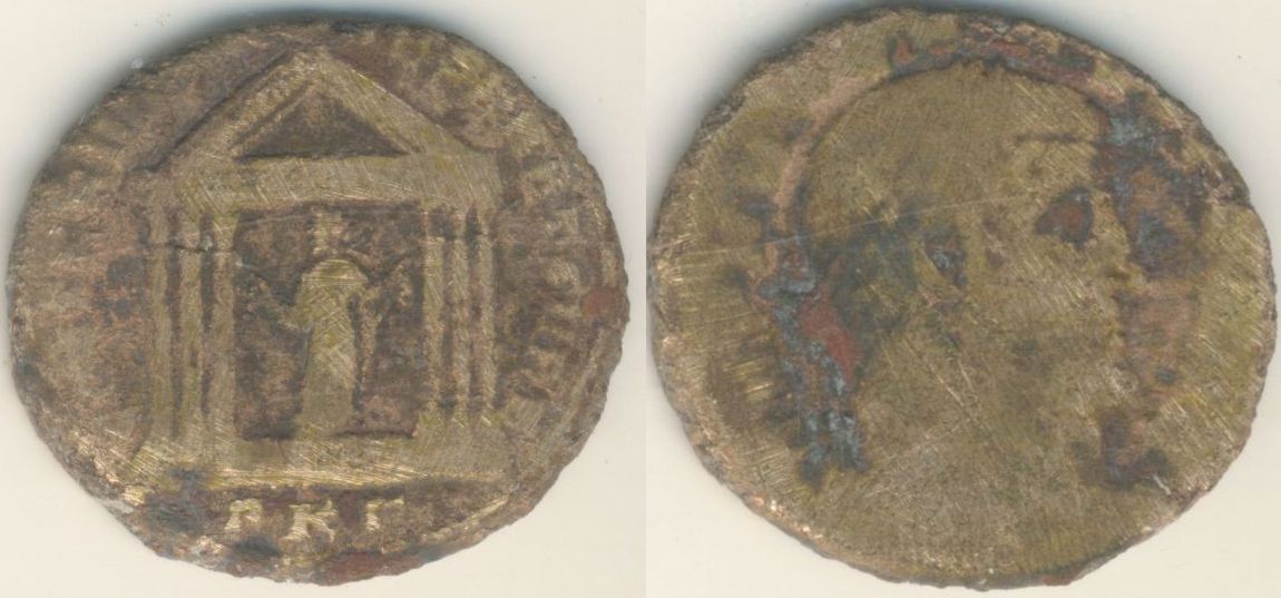 Münze 4 = vermutlich ein Follis des Constantinus I. mit Carthago-in-Tempel-Revers aus der Münzstätte Carthago. Vgl. RIC VI 61[/quote