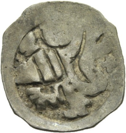 Dieser Pfennig stammt aus der Reichsstadt Nürnberg (Erlanger 86) und gleicht im Motiv den österreichischen Pfennigen der Periode.