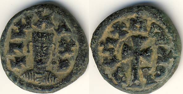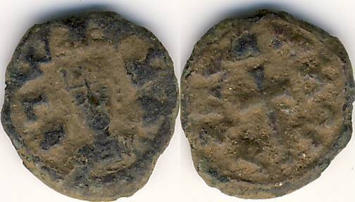 Meine aus Axum mitgebrachten, mit schöner Sandpatina versehenen Stücke, werde ich doch nicht abschrubben oder ins Ultraschallbad legen. Dazu sind sie mir viel zu schade. Einmal habe ich tatsächlich eine recht gängige Axum-Münze ins Untraschallbecken gelegt. Die Sandpatina war verschwunden. Was zum Vorschein kam, war ein mit Pseudo-Malachit (einem bestimmten Kupferphosphat) überzogenes Stück. Leider habe ich kein Bild von vorher-nacher. Ein Lapsus meinerseits, der bitte zu entschuldigen ist. Vielleicht wiederhole ich es einmal mit einer andern "gängigen" Axum-Munze. Aber was ist bei Axum schon gängig? Das sind alles Individuen! Das Nachher-Bild des in Rede stehenden wirklich sehr schlecht erhaltenen anonymen Stücks - von der Sandpatina beraubt - seht Ihr hier (Anonymous, MH#76; H#36):